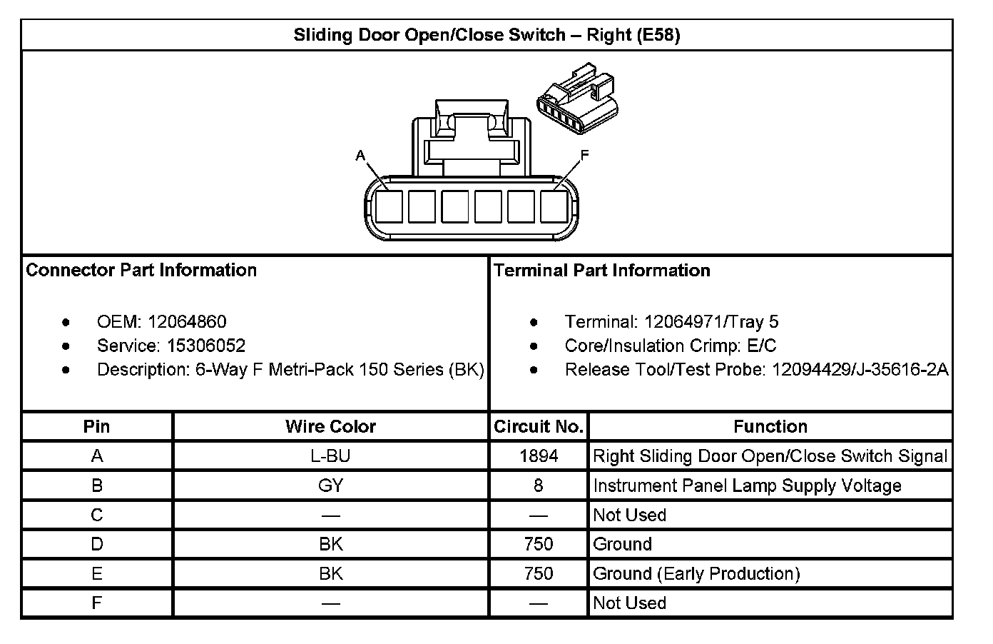 Sliding Door Open/Close Switch - Right (With RPO Code E58):
