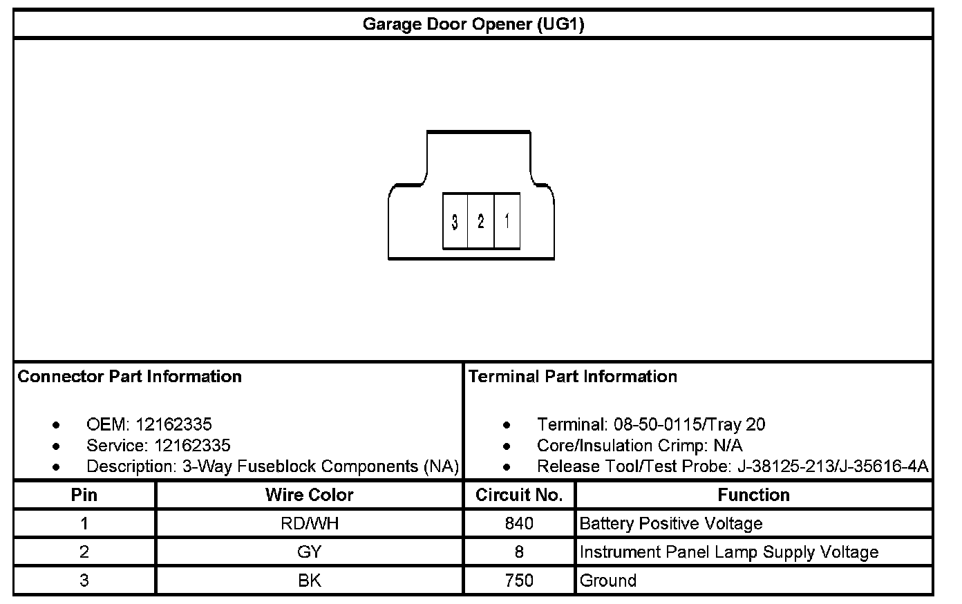 Garage Door Opener (With RPO Code UG1):