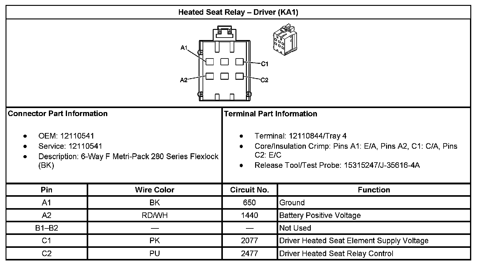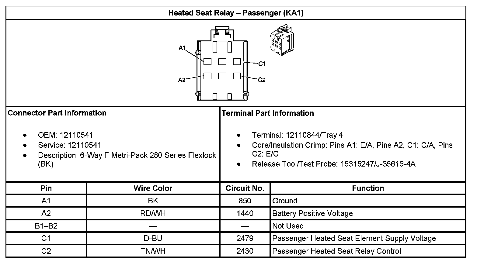 Heated Seat Relay - Passenger (With RPO Code KA1):