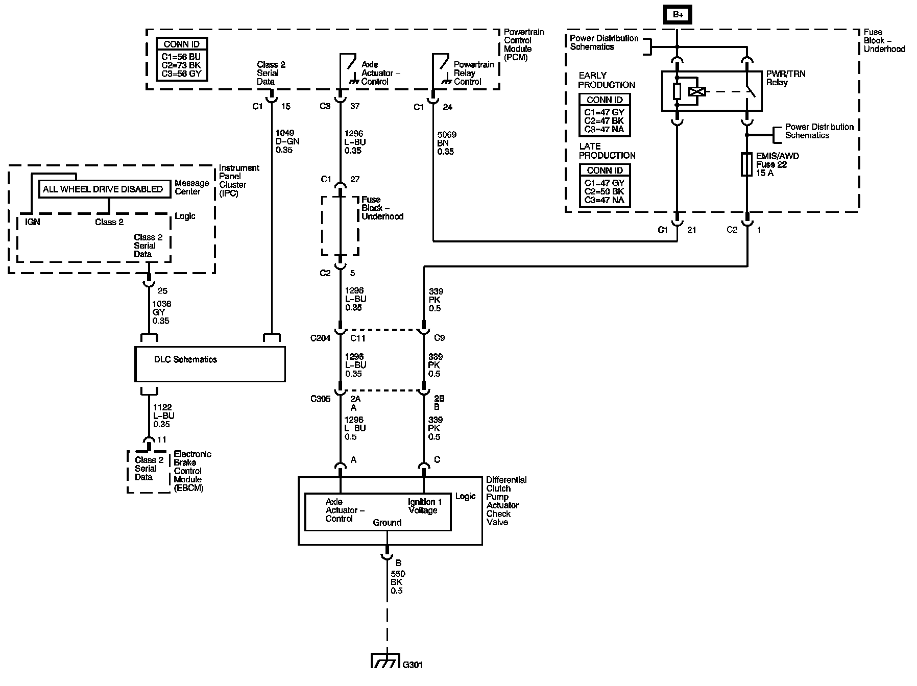 The locations for the Connectors, Grounds, Splices, and Grommets shown within these diagrams can be found via their numbers at Vehicle Locations.
