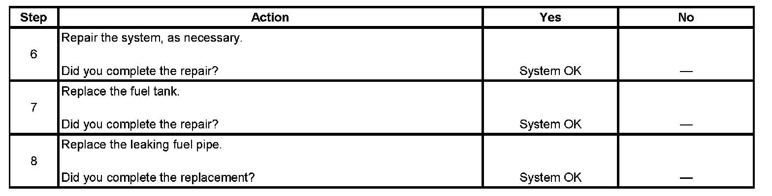 4. This step tests for fuel leaks below the fuel tank fuel level.