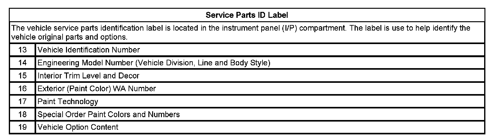 Service Parts ID Label