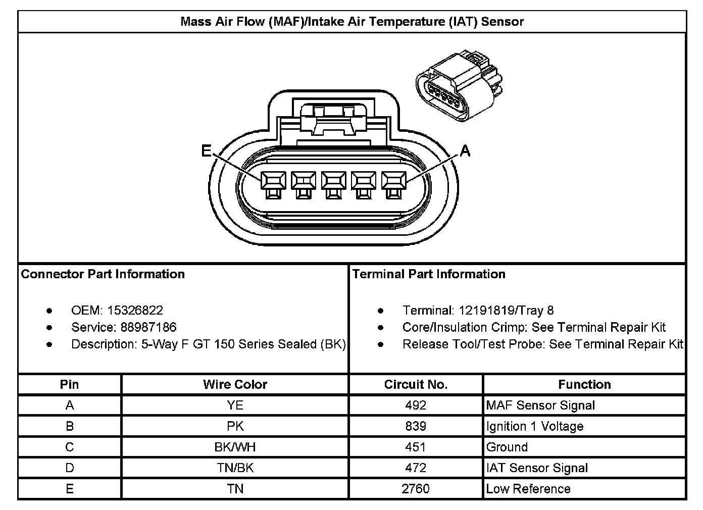 Mass Air Flow (MAF)/Intake Air Temperature (IAT) Sensor: