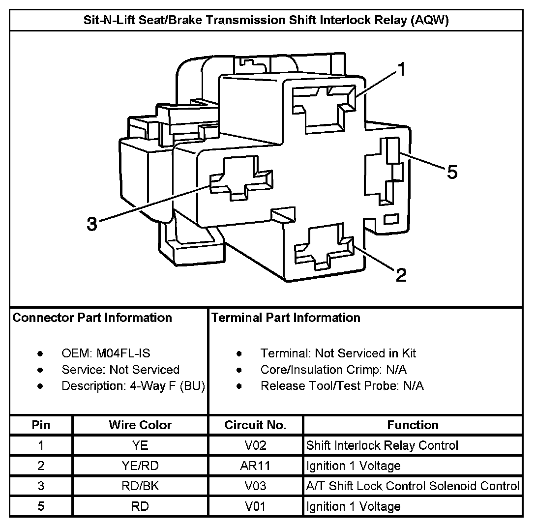 Sit-N-Lift Seat/Brake Transmission Shift Interlock Relay (AQW):
