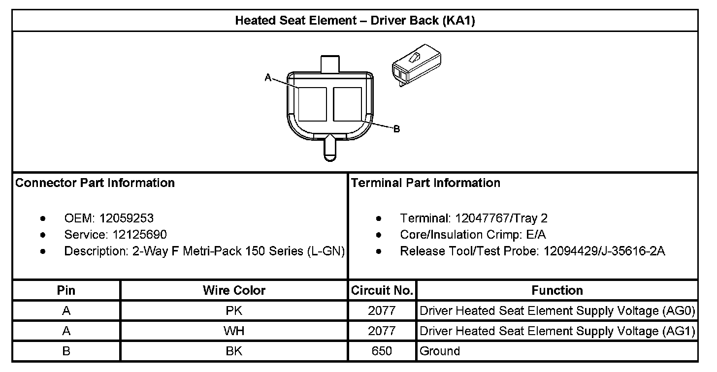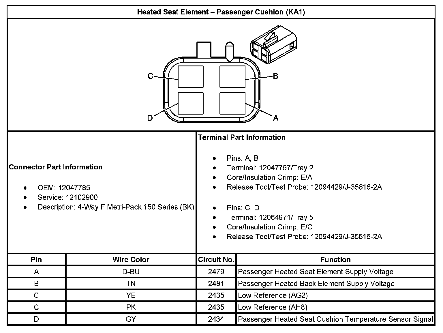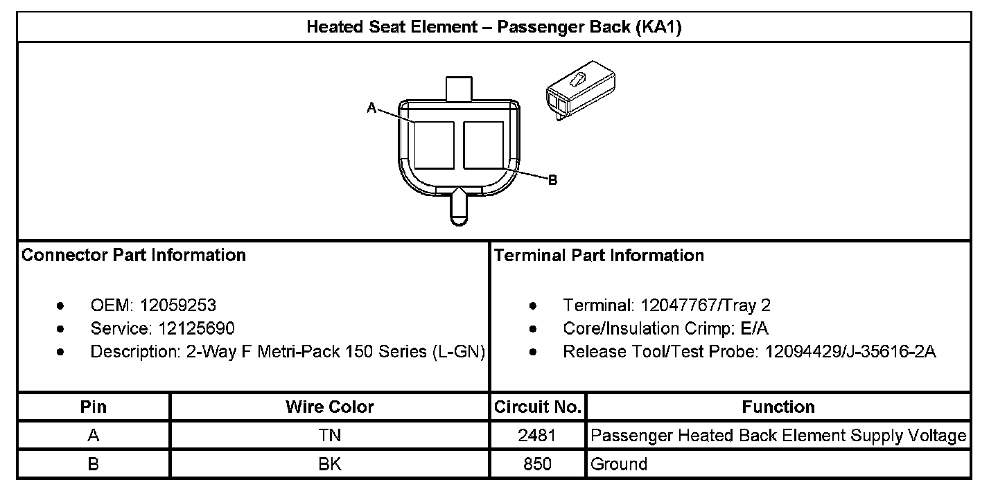 Heated Seat Element - Passenger Back (With RPO Code KA1):