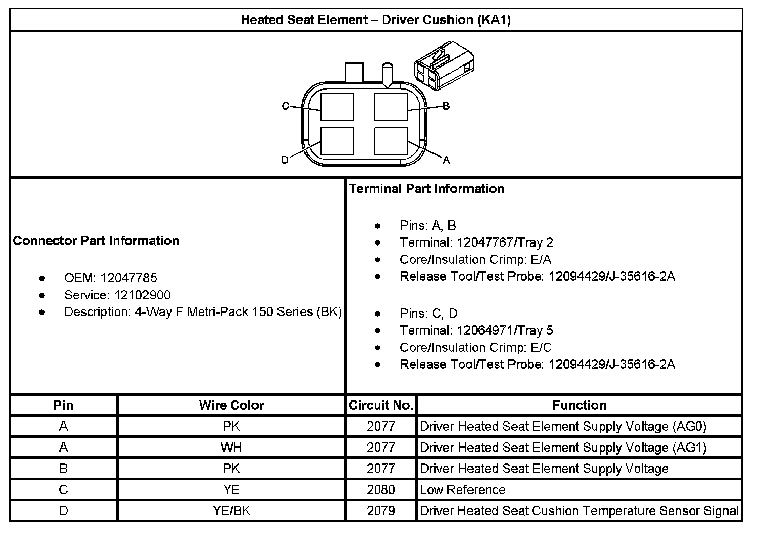 Heated Seat Element - Driver Cushion (With RPO Code KA1):