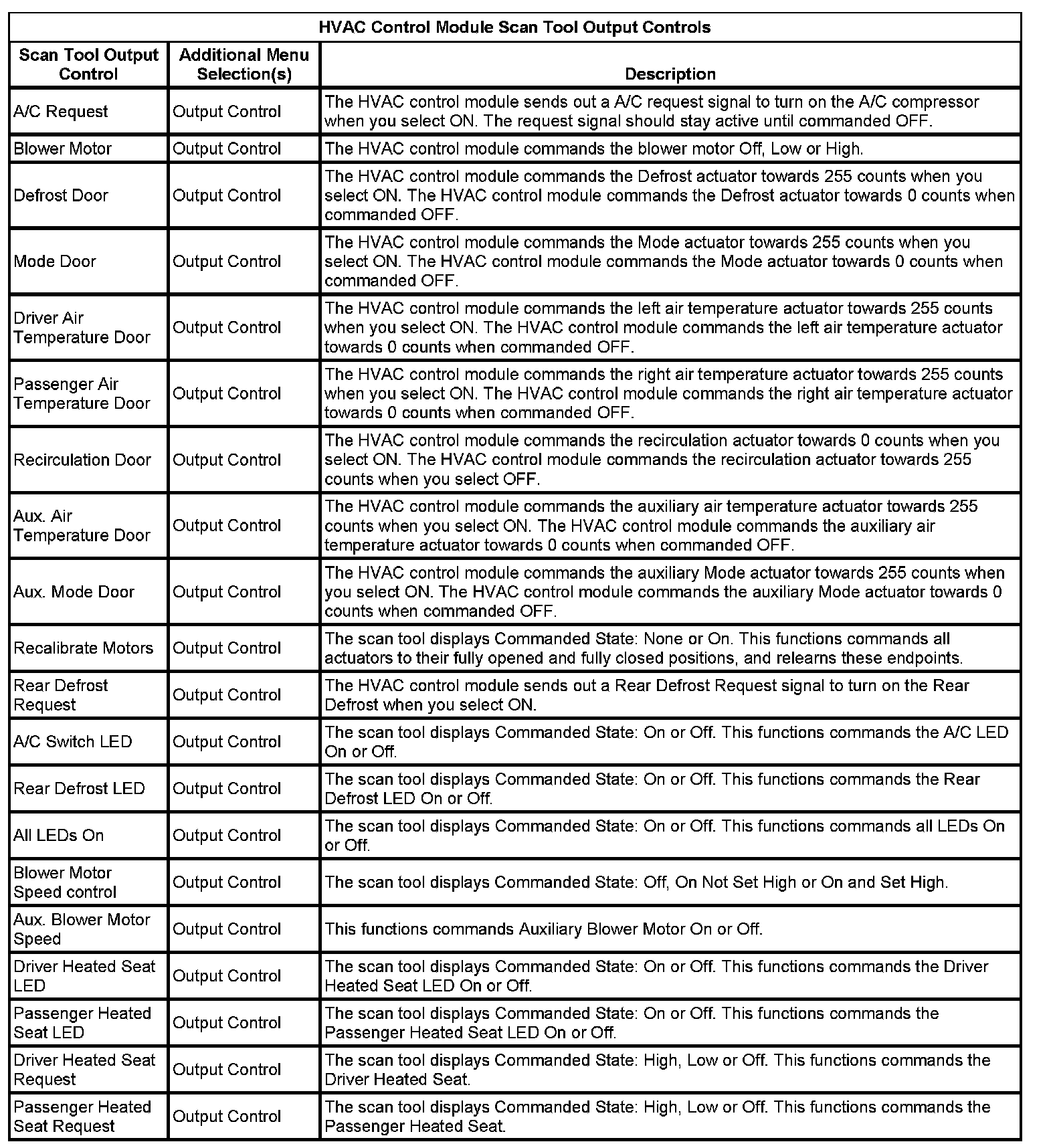 HVAC Control Module Scan Tool Output Controls: