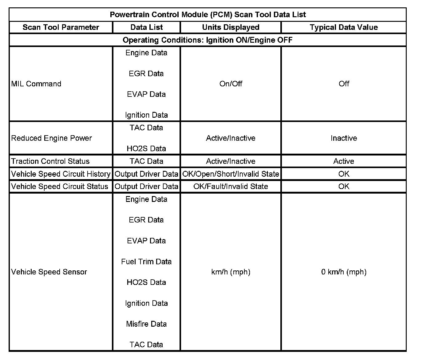 Powertrain Control Module (PCM) Scan Tool Data List (Part 1):