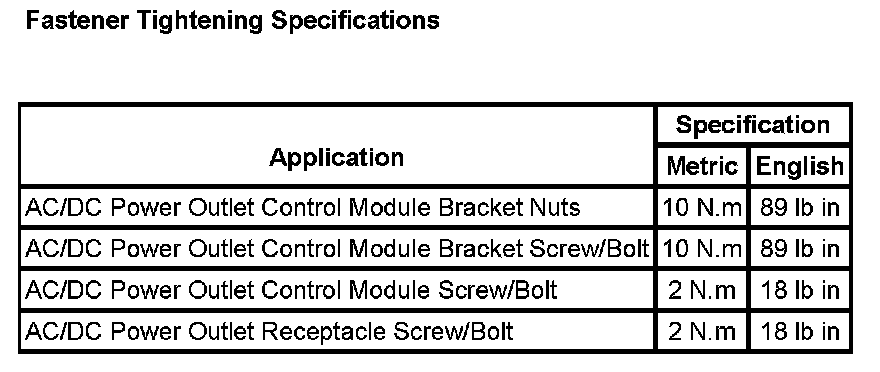 Auxiliary Power Outlet: Specifications