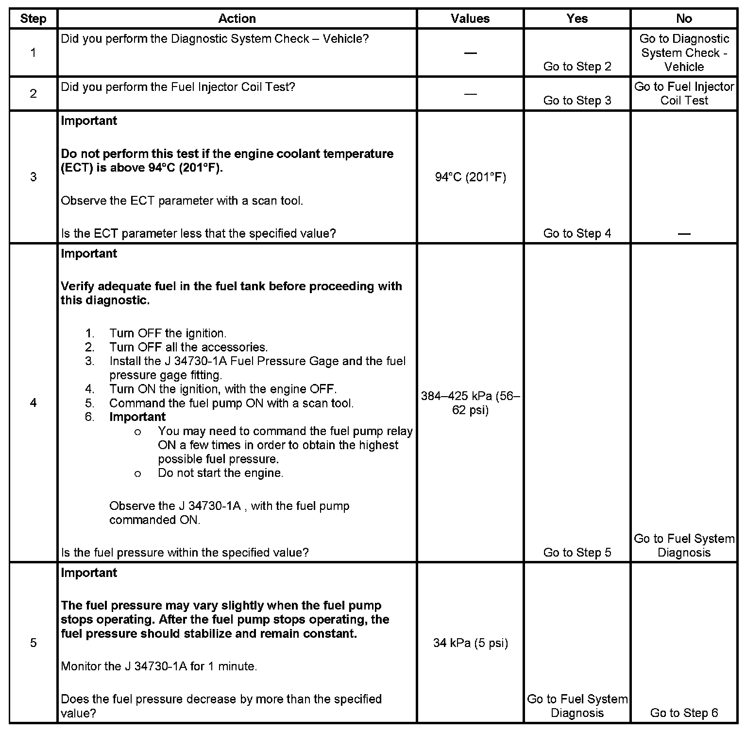 3. The engine coolant temperature (ECT) must be below the operating temperature in order to avoid irregular fuel pressure readings due to hot soak fuel boiling.