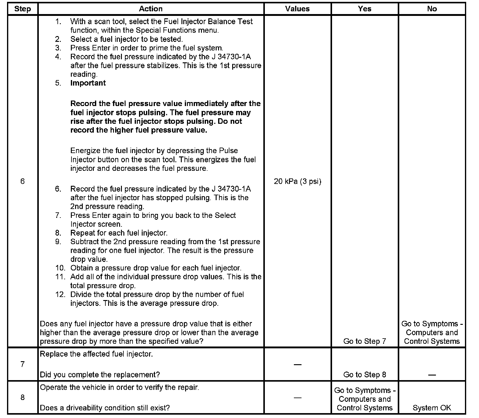 Fuel Injector Balance Test Example (Actual Results May Vary):
