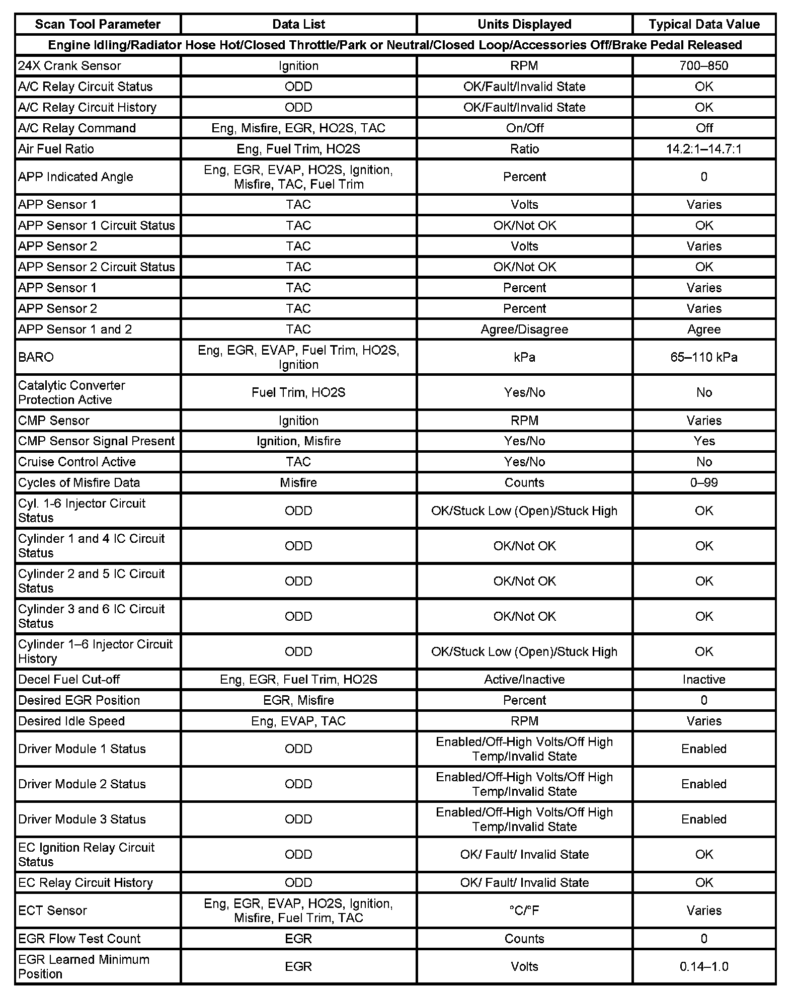 Only the parameters listed below are referenced in this service Data for use in diagnosis. If all values are within the typical range described below, refer to Symptoms - Computers and Control Systems for diagnosis. Symptom Related Diagnostic Procedures
