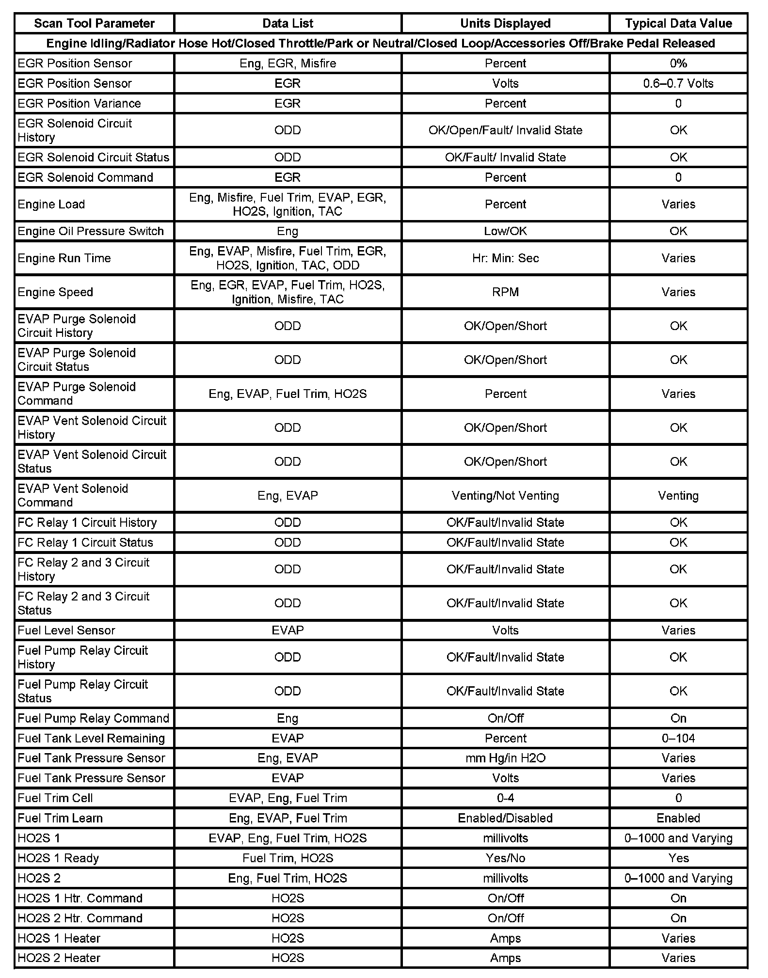 The scan tool values from a properly running engine may be used for comparison with the engine you are diagnosing. The Engine Scan Tool Data List represents values that would be seen on a normally running engine.