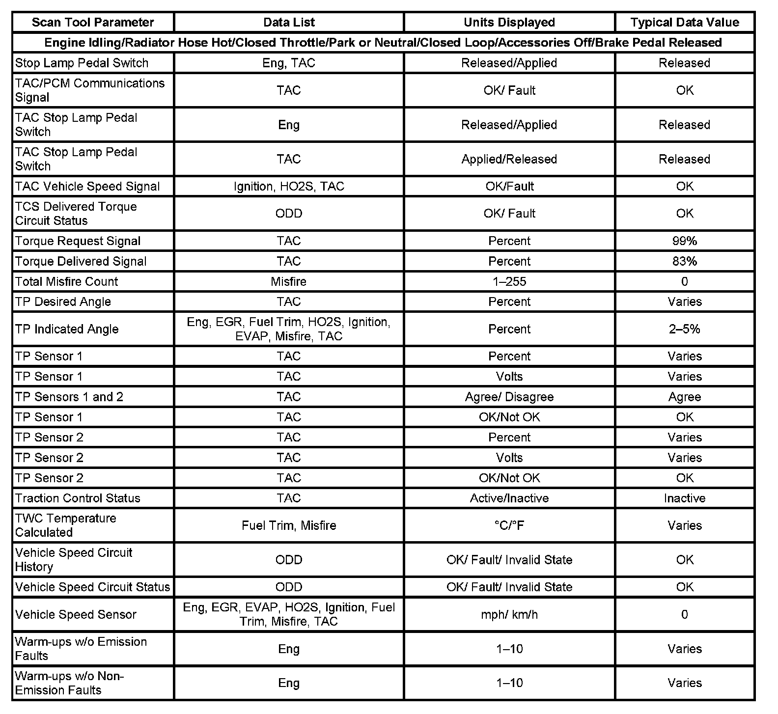 The column labeled Data List indicates where a parameter can be located on the scan tool. Refer to the scan tool operating manual for the exact locations of the data lists. The following is a description of each term listed: