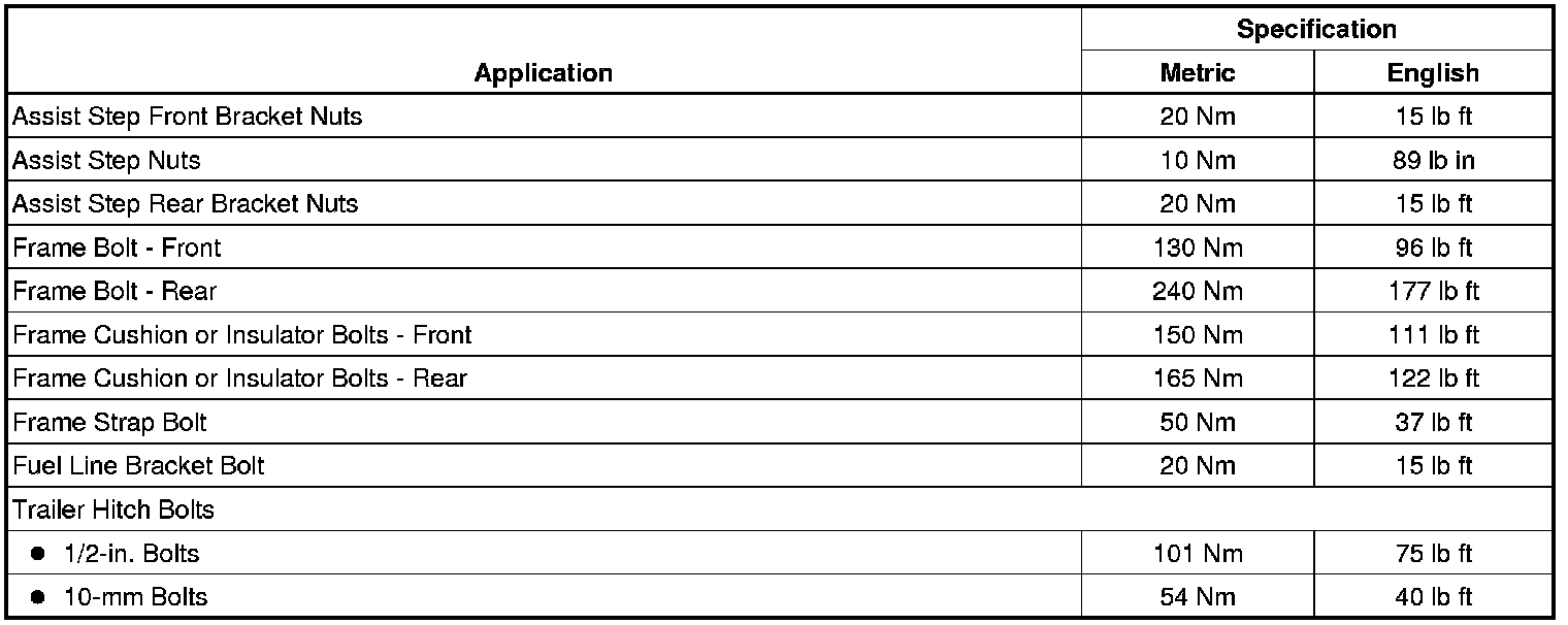 Fastener Tightening Specifications
