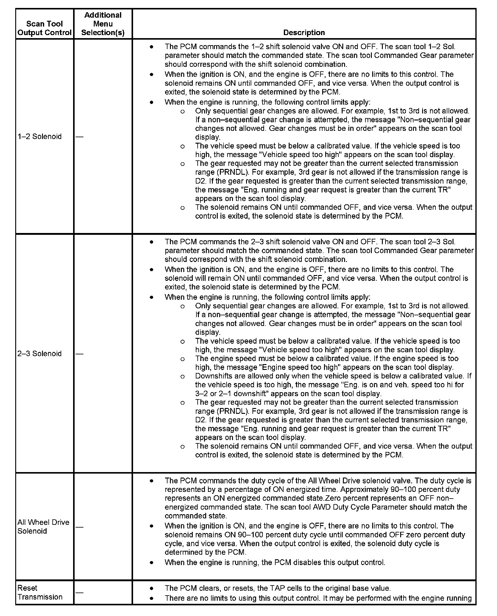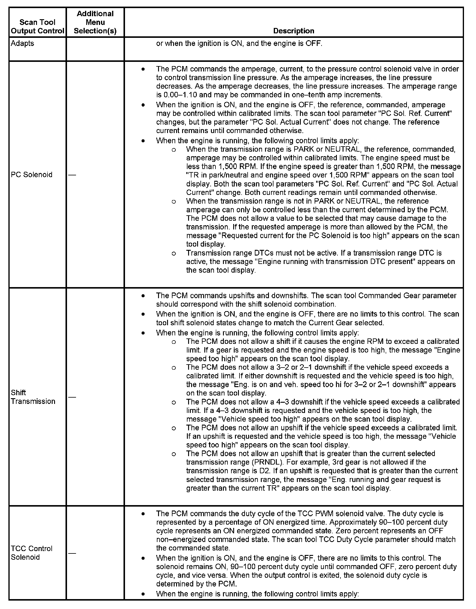 Scan Tool Output Controls