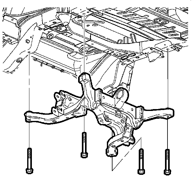 9. Remove the support to body bolts and remove the support assembly from the vehicle.