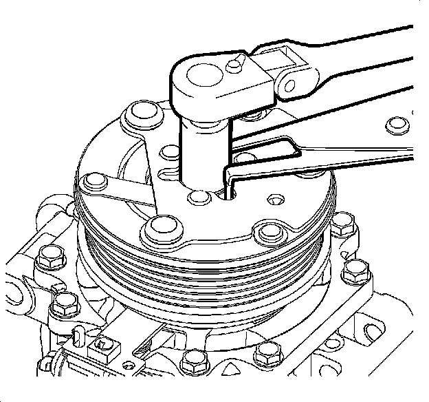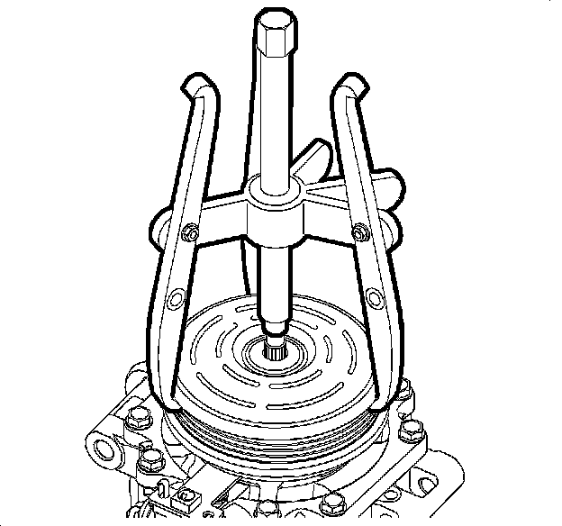 5. Use J 25031-A to remove the A/C clutch pulley.