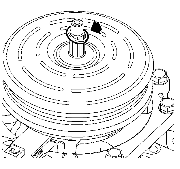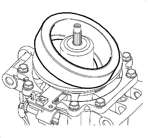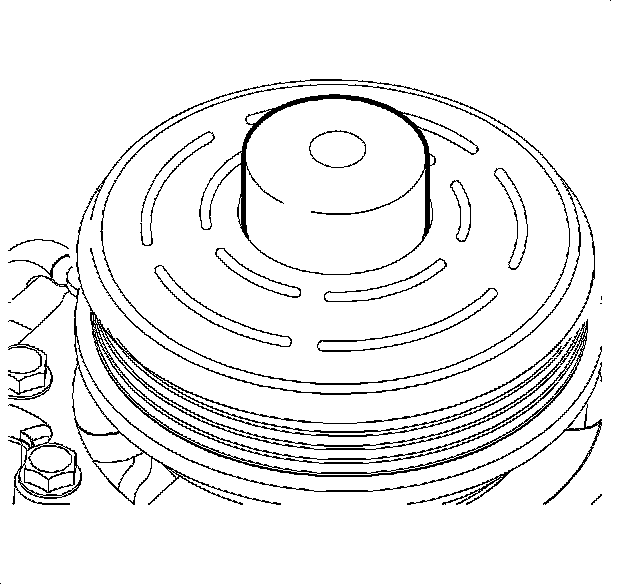 8. Use J 45504 to align the clutch bearing/pulley assembly over the hub. Gently tap on the assembly to install.