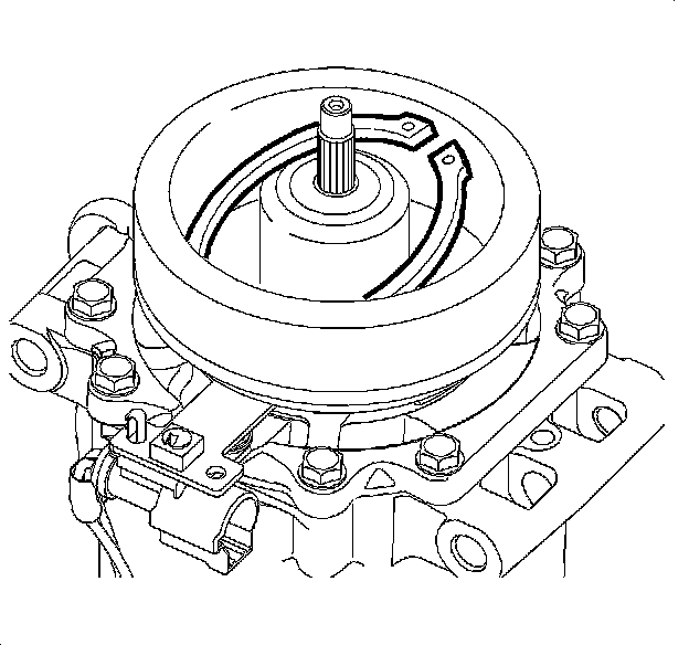 2. Use J 45267 to hold the disk and hub assembly. Remove the clutch nut and the disk and hub assembly.