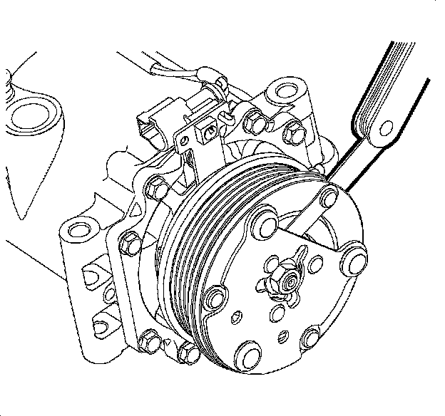 IMPORTANT: The A/C clutch bearing and pulley is a slip fit on the compressor. If correctly aligned the pulley should slip on easily. If difficulty is encountered, install using the pulley installer tool.