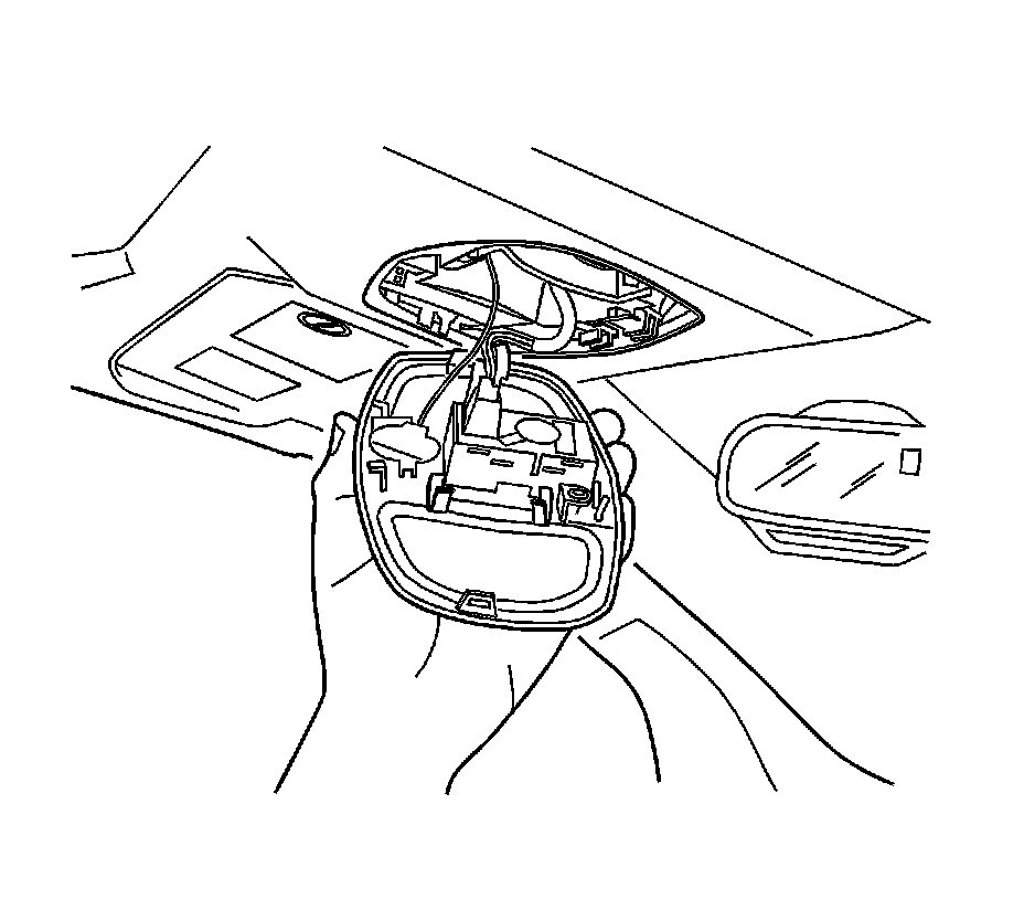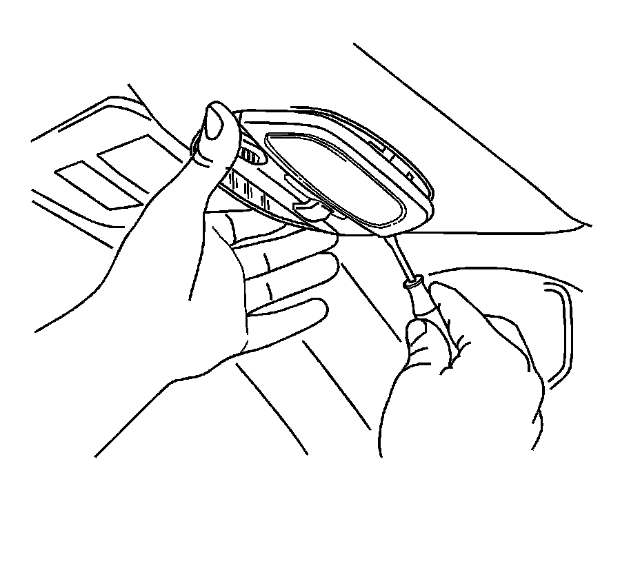 1. Insert a small flat-bladed tool at the front of the reading lamp. Disengage the reading lamp.