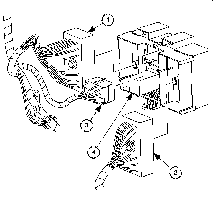 2. Connect the harness connectors to the back of the I/P fuse block (4).