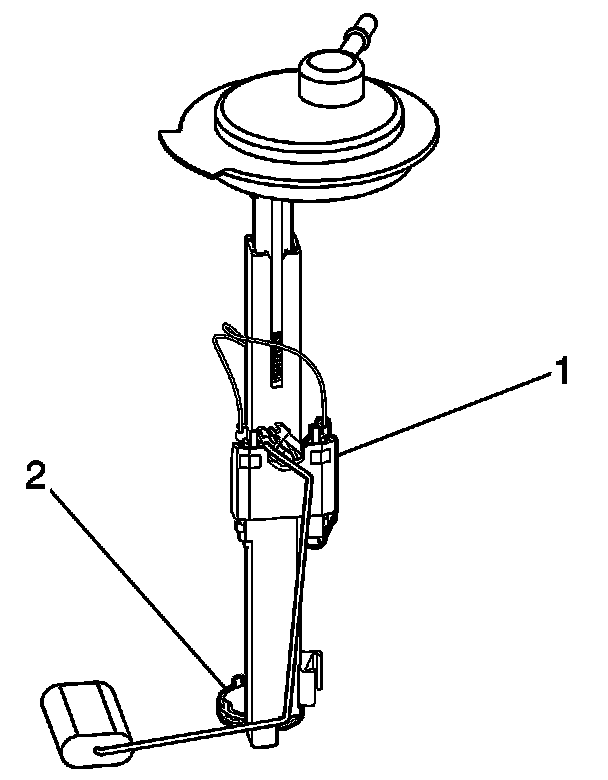 The fuel pump (2) is mounted in the primary fuel tank module reservoir. The fuel pump is an electric high-pressure pump. Fuel is pumped to the fuel injection system at a specified flow and pressure. The fuel pump delivers a constant flow of fuel to the engine even during low fuel conditions and aggressive vehicle maneuvers. The control module controls the electric fuel pump operation through a fuel pump relay.