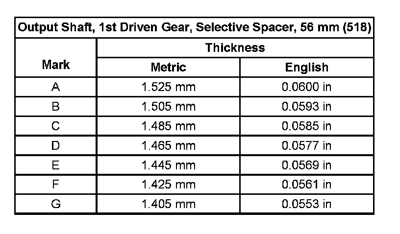 Output Shaft, 1st Driven Gear, Selective Spacer, 56 mm (518)