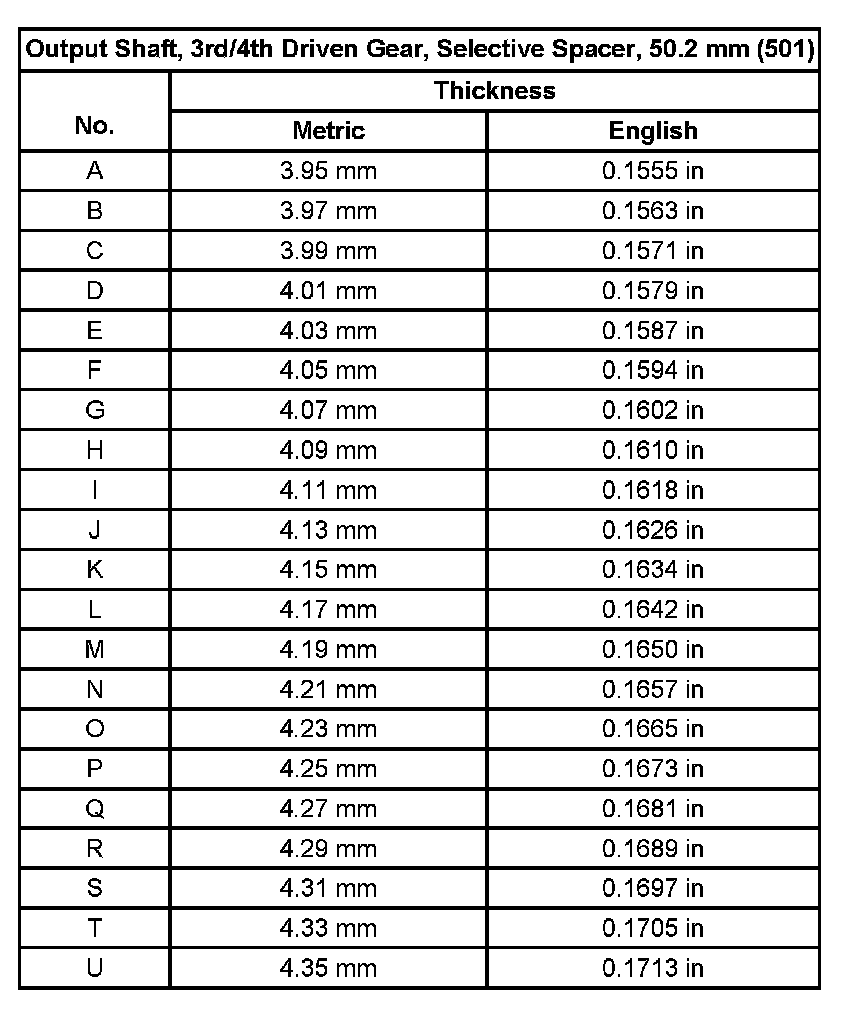 Output Shaft, 3rd/4th Driven Gear, Selective Spacer, 50.2 mm (501)