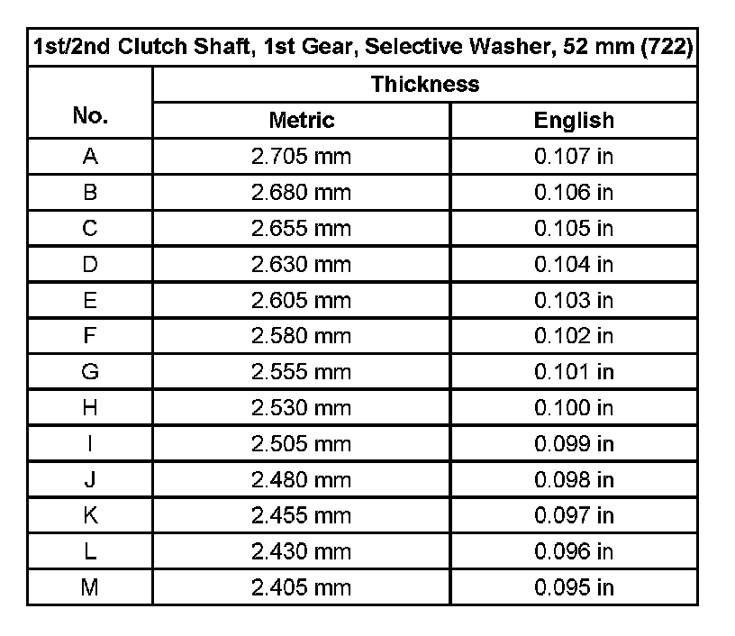 1st/2nd Clutch Shaft, 1st Gear, Selective Washer, 52 mm (722)