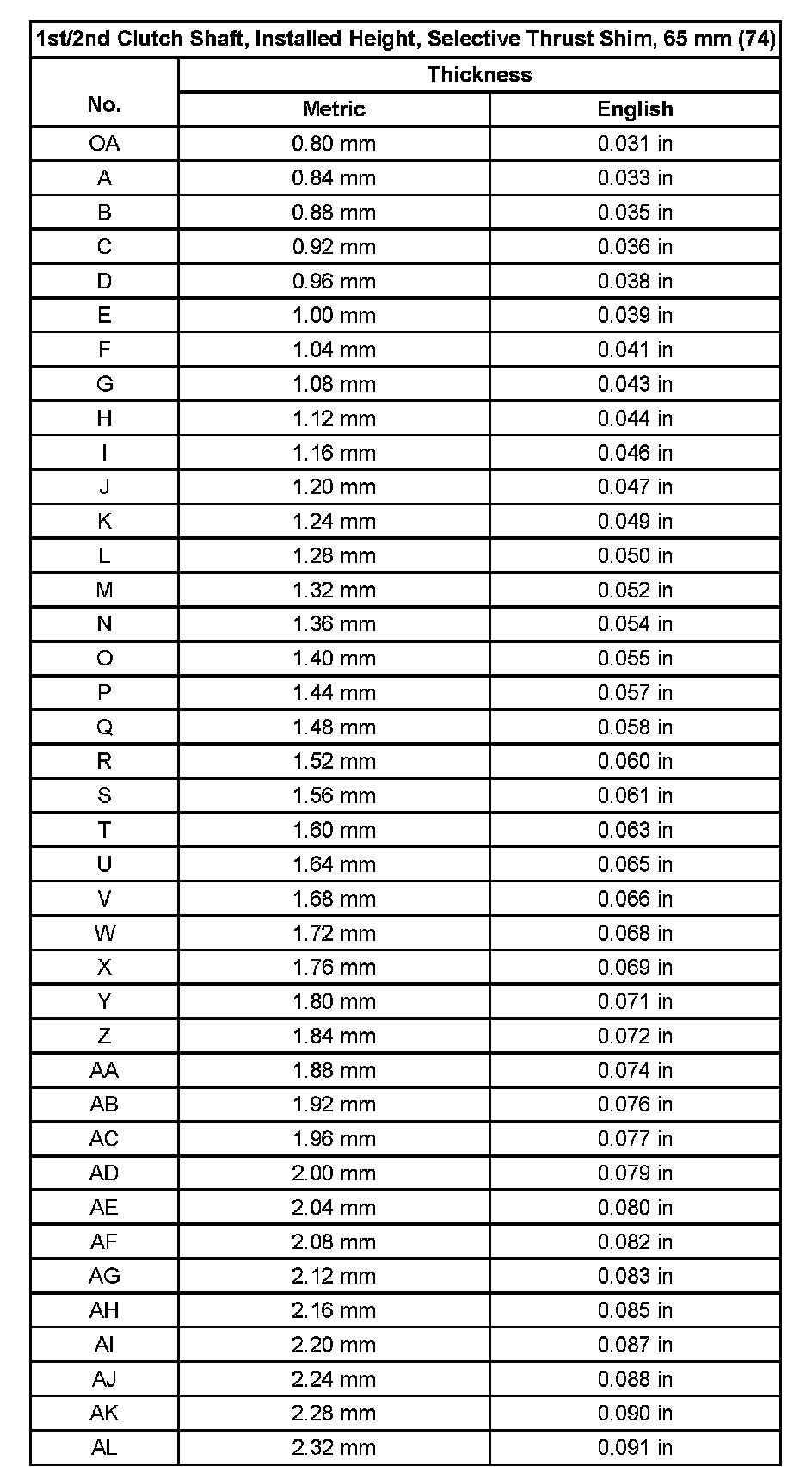 1st/2nd Clutch Shaft, Installed Height, Selective Thrust Shim, 65 mm (74)