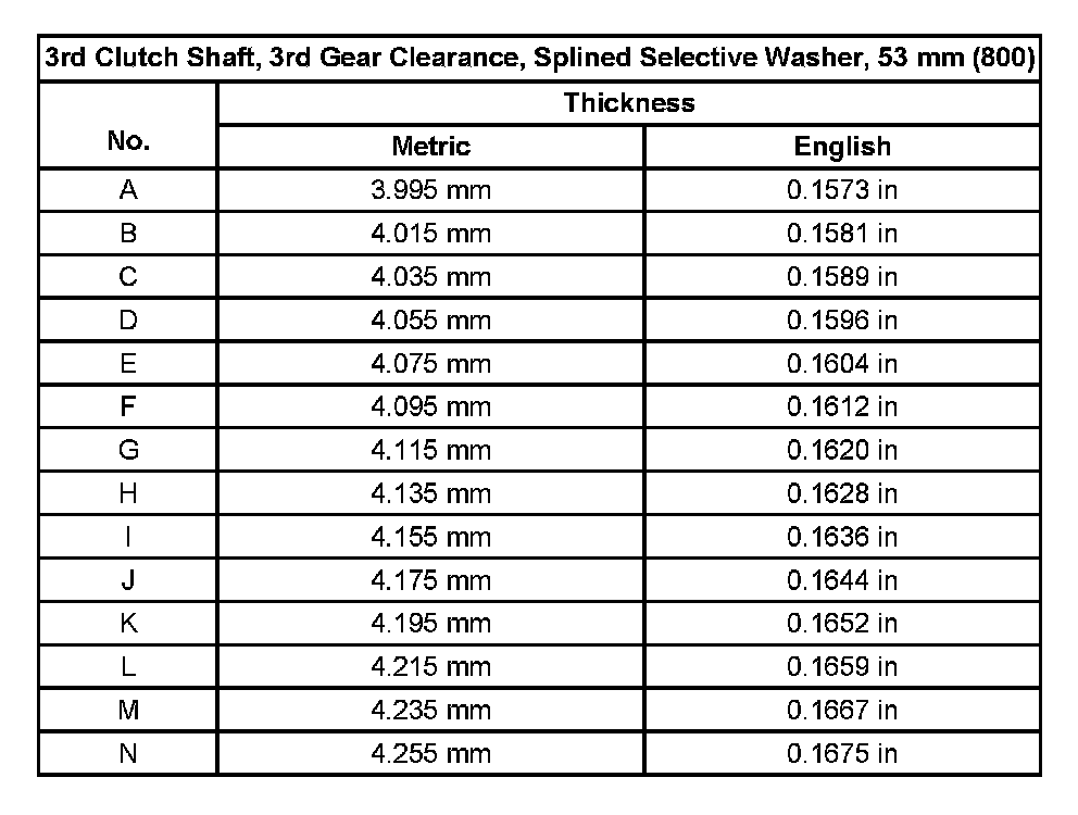 3rd Clutch Shaft, 3rd Gear Clearance, Splined Selective Washer, 53 mm (800)