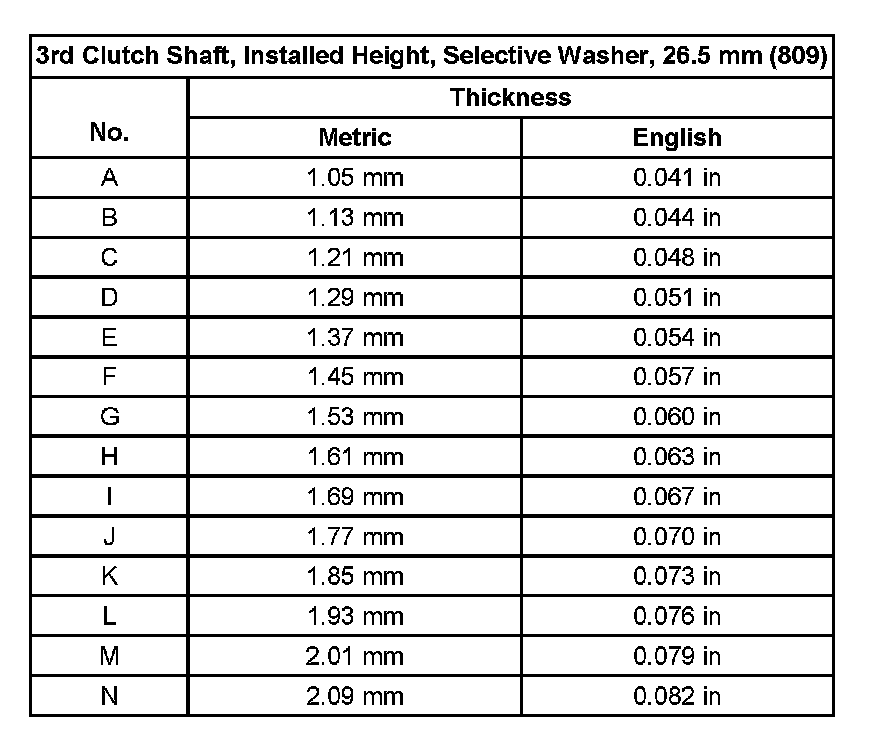 3rd Clutch Shaft, Installed Height, Selective Washer, 26.5 mm (809)