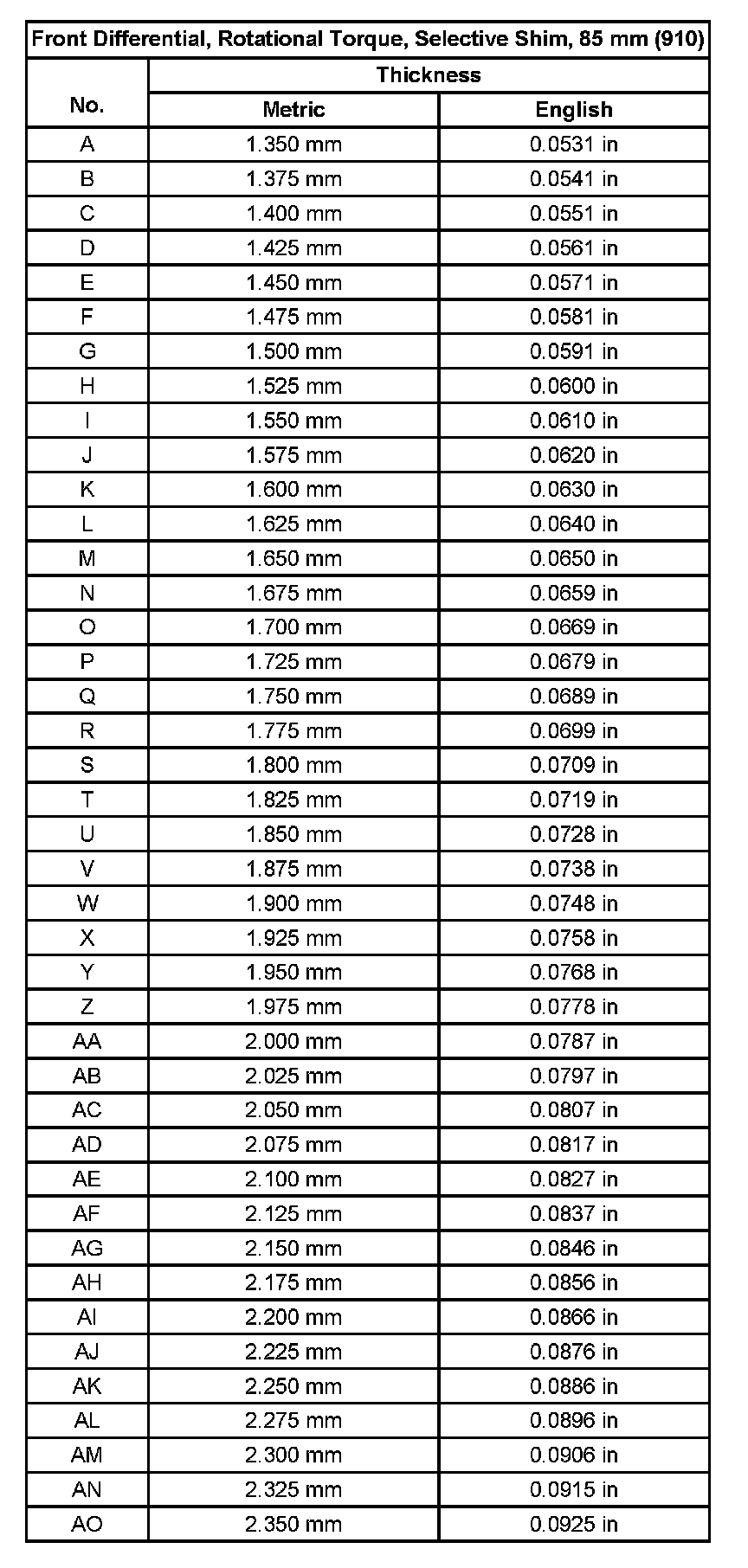 Front Differential, Rotational Torque, Selective Shim, 85 mm (910)