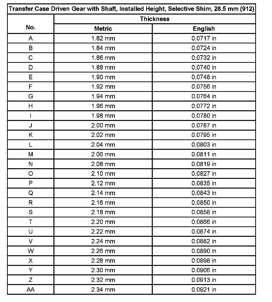 Transfer Case Driven Gear with Shaft, Installed Height, Selective Shim, 28.5 mm (912)