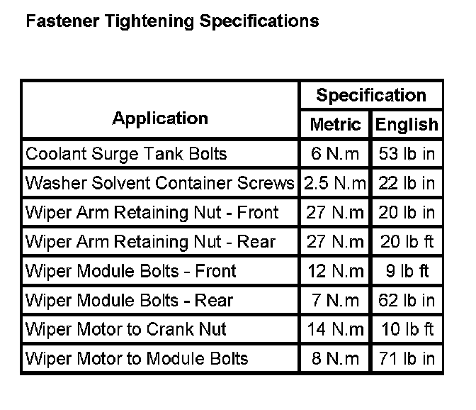 Wiper and Washer Systems: Specifications
