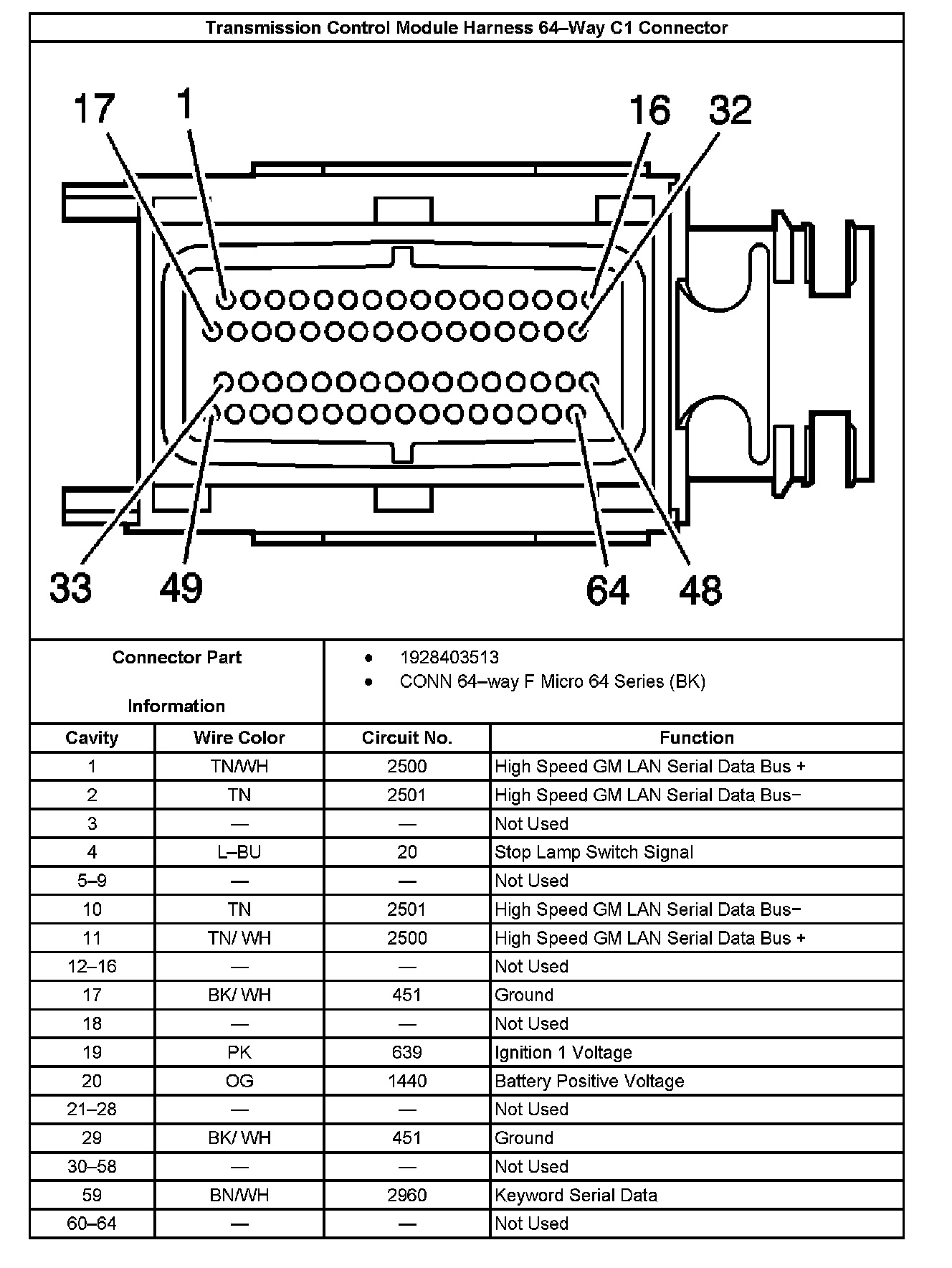 Transmission Control Module Harness 64-Way C2 Connector 2: