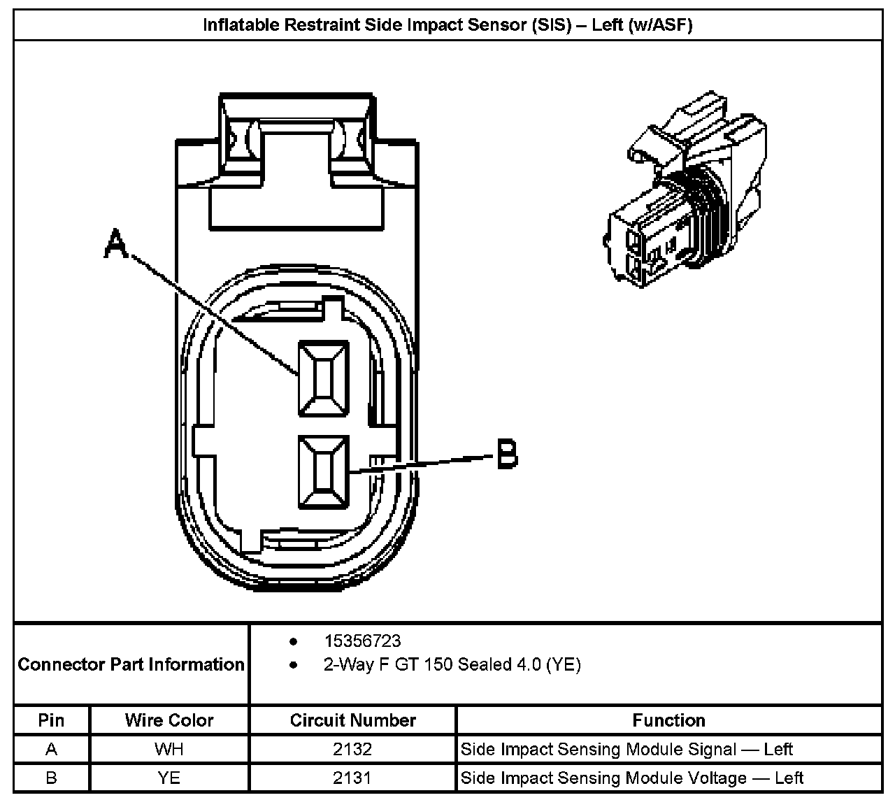 Inflatable Restraint Side Impact Sensor (SIS) - Left (With RPO Code ASF):