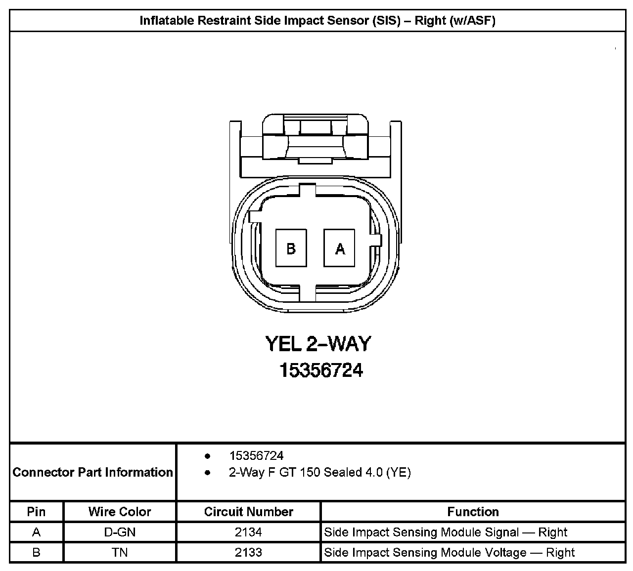 Inflatable Restraint Side Impact Sensor (SIS) - Right (With RPO Code ASF):