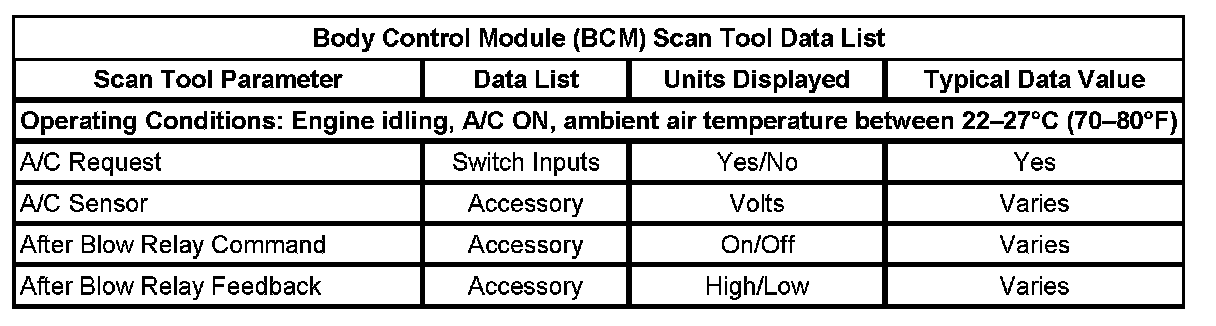 SCAN TOOL DATA LISTBody Control Module (BCM) Scan Tool Data List: