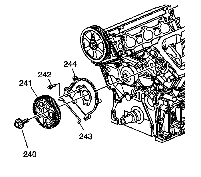 2. Remove the bolt (240), sprocket (241), bolts (242), cover (244) and seal (243).