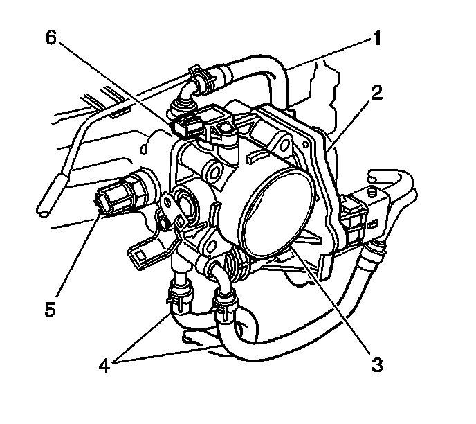 1. Make sure the MAP sensor mounting surface is clean. Install the MAP sensor with the new O-ring and attachment bolt (6).