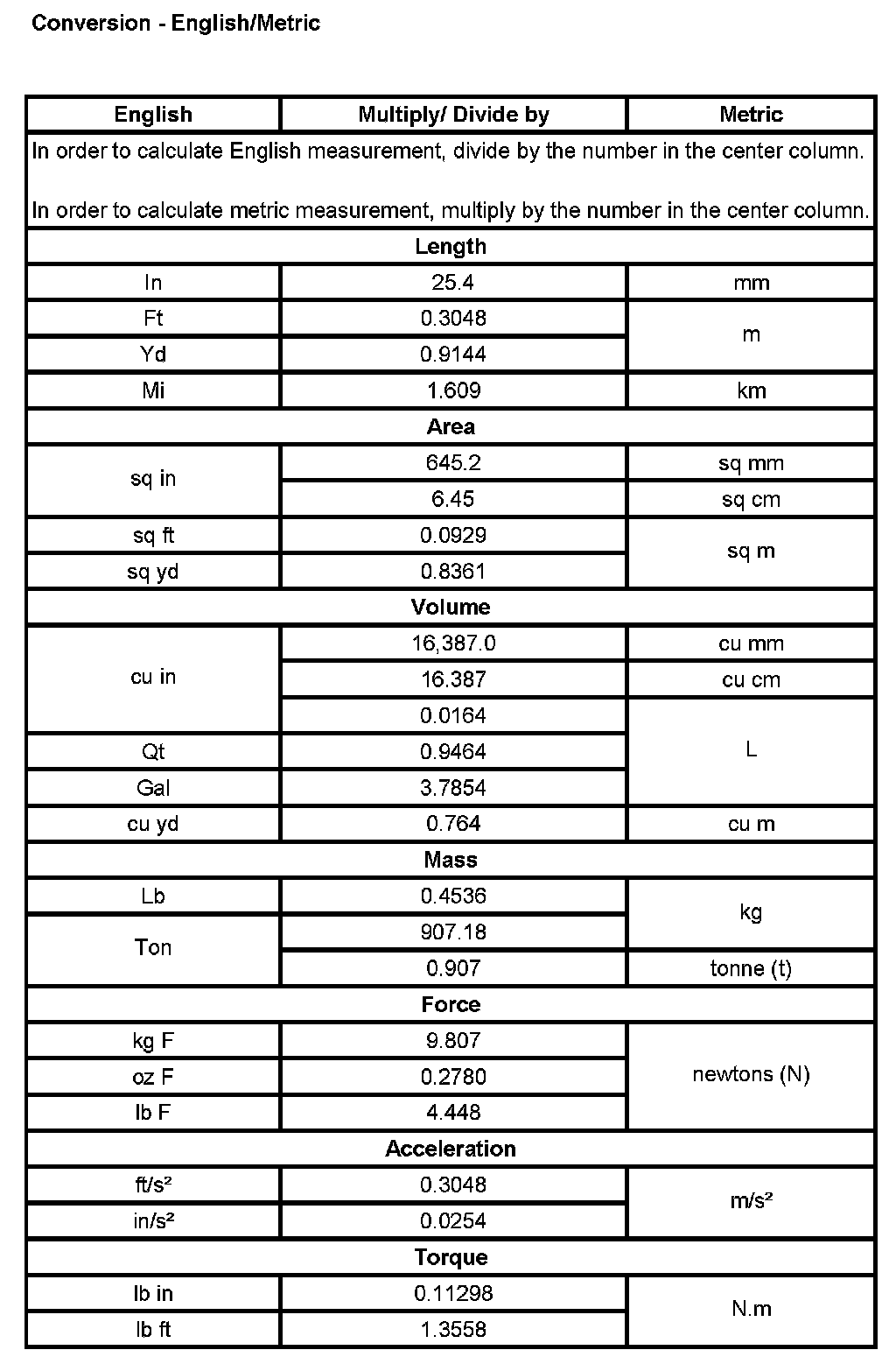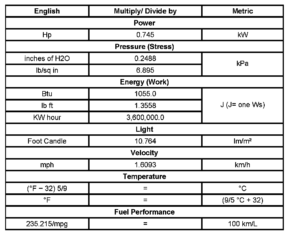 Conversion - English/Metric