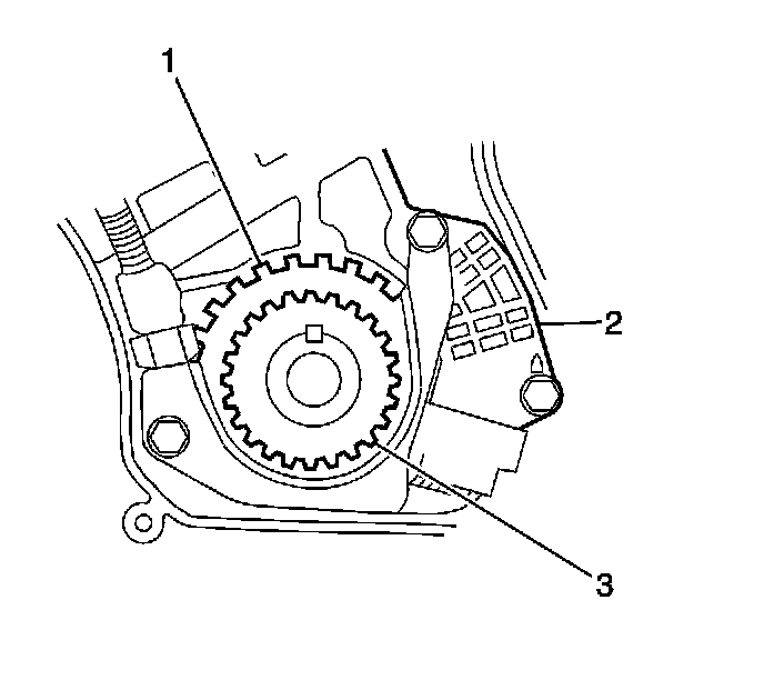 The CKP sensor signal rotor (1) is an integral part of the crankshaft pulley (3) and is located behind the timing belt cover. When the crankshaft rotates, the CKP sensor signal rotor teeth pass by the CKP sensor (2) causing a fluctuation in the sensors magnetic field. The fluctuation in the magnetic field induces a voltage in the CKP sensor circuitry that corresponds to every tooth on the crankshaft signal rotor. The rotor has 24 evenly spaced teeth, with two teeth missing, indicating top dead center (TDC) and producing 22 electrical pulse per revolution. CKP sensor A and CKP sensor B each provide position signals to the PCM. The PCM relies on the signal from CKP sensor A first, and uses the signal from sensor B only when sensor A is missing or unintelligible.