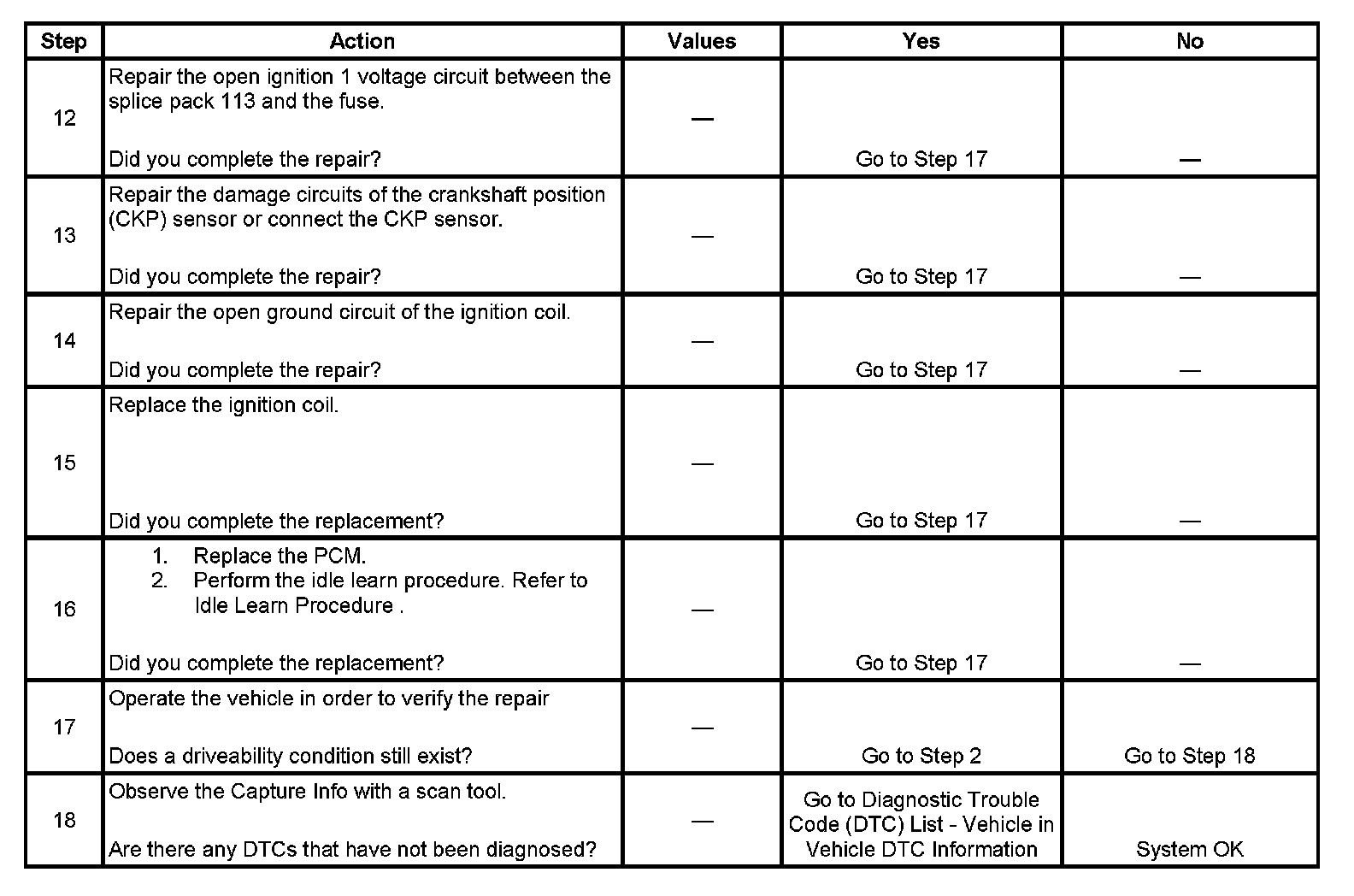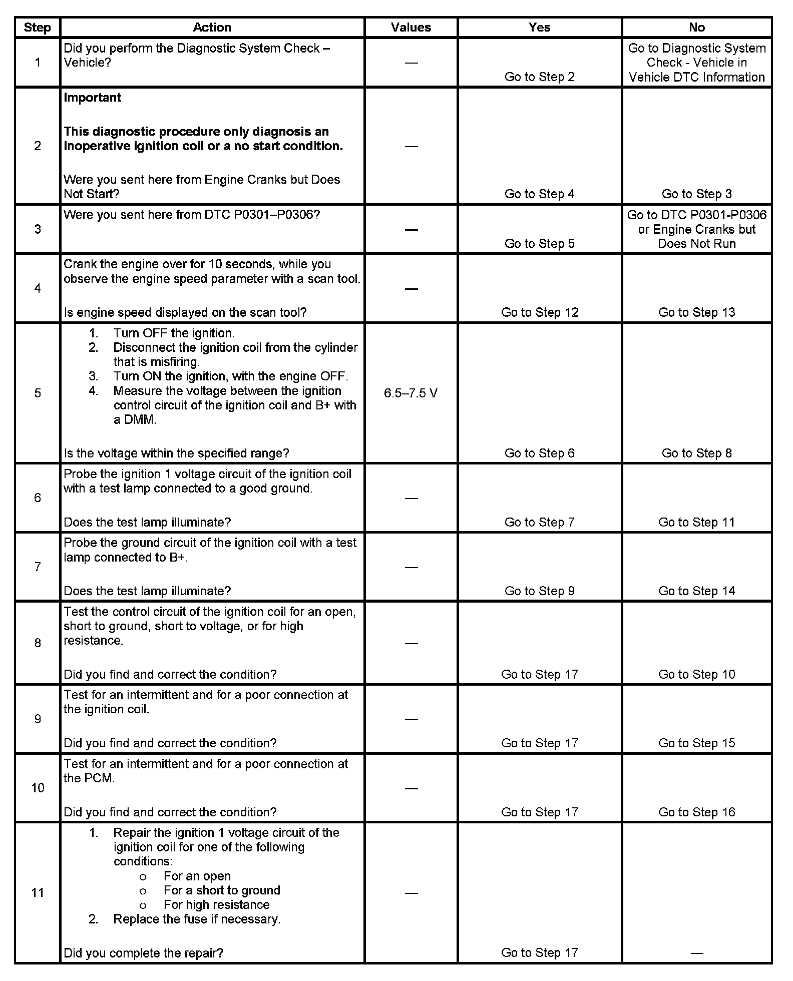 5. This step is tests for a condition with the control circuit of the ignition coil. If the voltage is not within the specified range, There is a condition with the control circuit of the ignition coil.