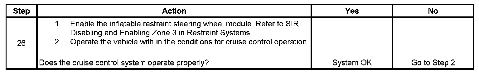 Disable the inflatable restraint steering wheel module when performing this diagnostic table. Refer to SIR Disabling and Enabling Zone 3 in Restraint Systems.