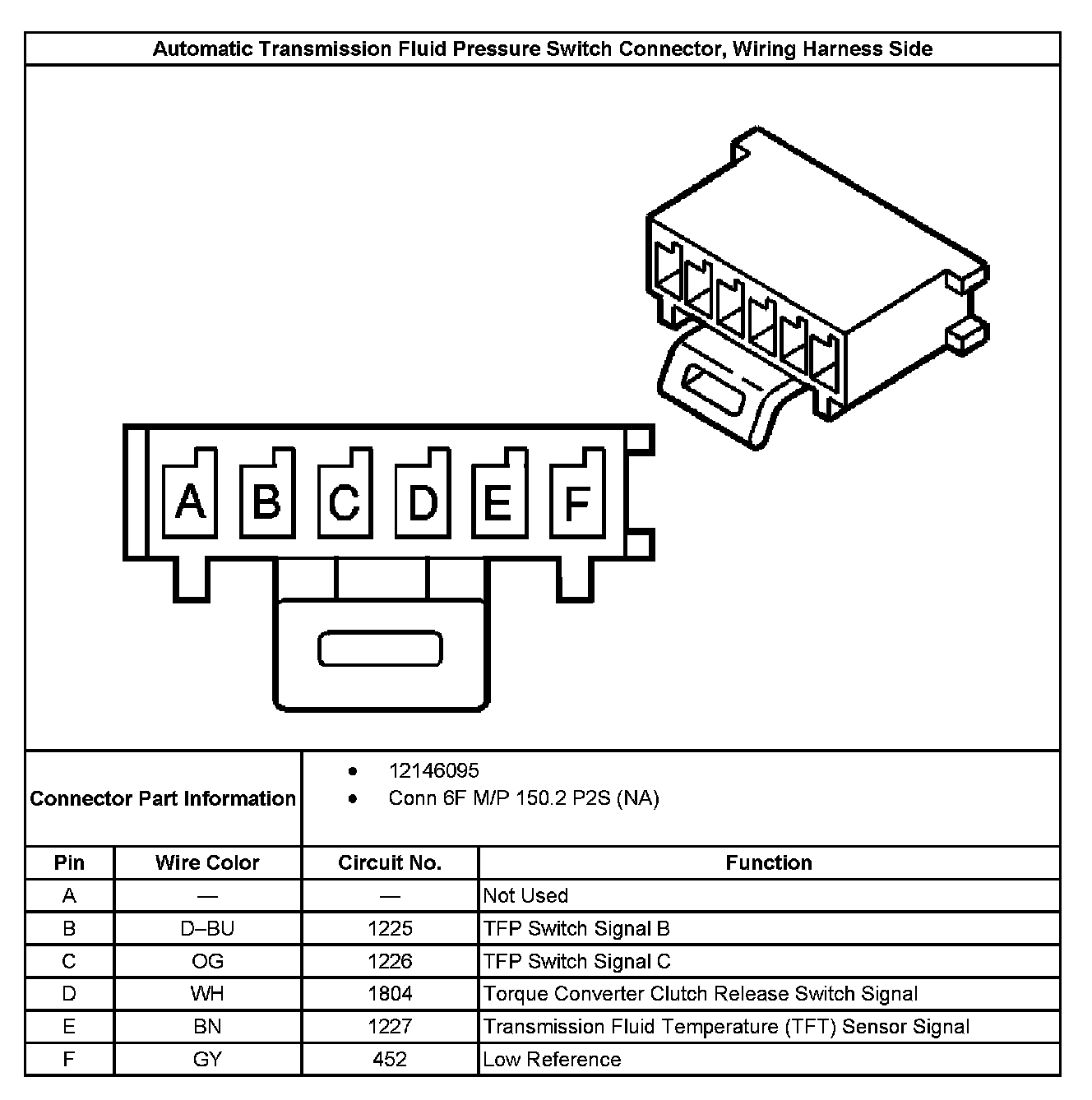 Automatic Transmission Fluid Pressure Switch Connector, Wiring Harness Side: