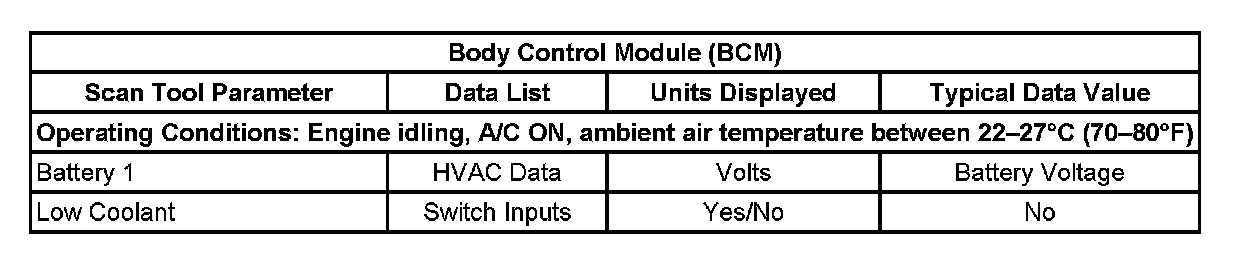 Use the Scan Tool Data Display Values and Definitions Information in order to assist in diagnosing the HVAC Control Module problems. Compare the vehicles actual scan tool data with the typical data display value table information. Use the data information in order to aid in understanding the nature of the problem when the vehicle does not match with the typical data display values.