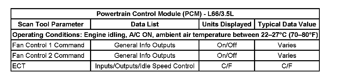 The scan tool data values were taken from a known good vehicle under the following conditions: